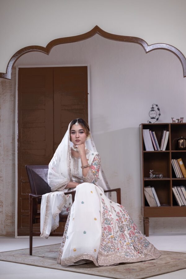 • কাজ: বডি এবং স্লিভে নিখুঁত হাতের কাজ, এমব্রয়ডারি অথবা সিকোয়েন্সের জমকালো কারুকাজ করা, যা ড্রেসটিকে করে তুলেছে প্রাণবন্ত।